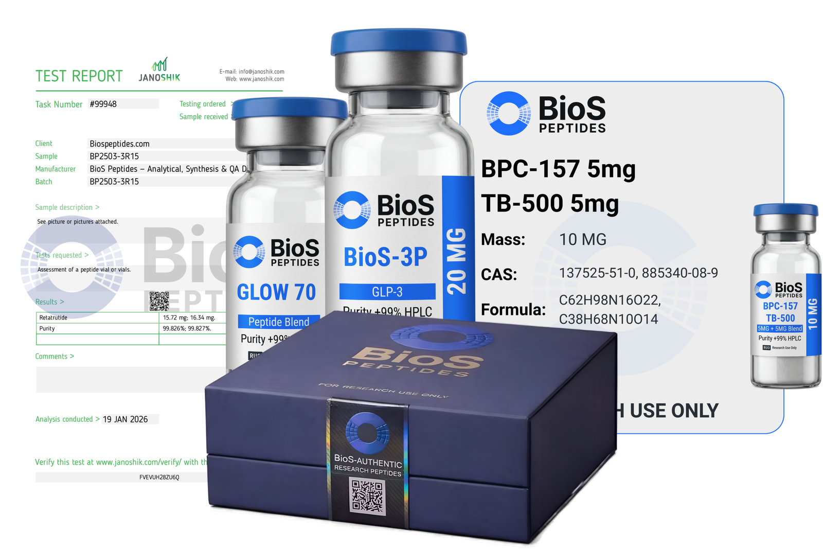BioS Peptides operates out of the U.S. and exists for one reason: to supply research peptides that actually match what's on the label. We source from established producers, then verify everything through independent labs before it goes on our shelves. Each lot is independently tested for endotoxins, heavy metals, and sterility.
