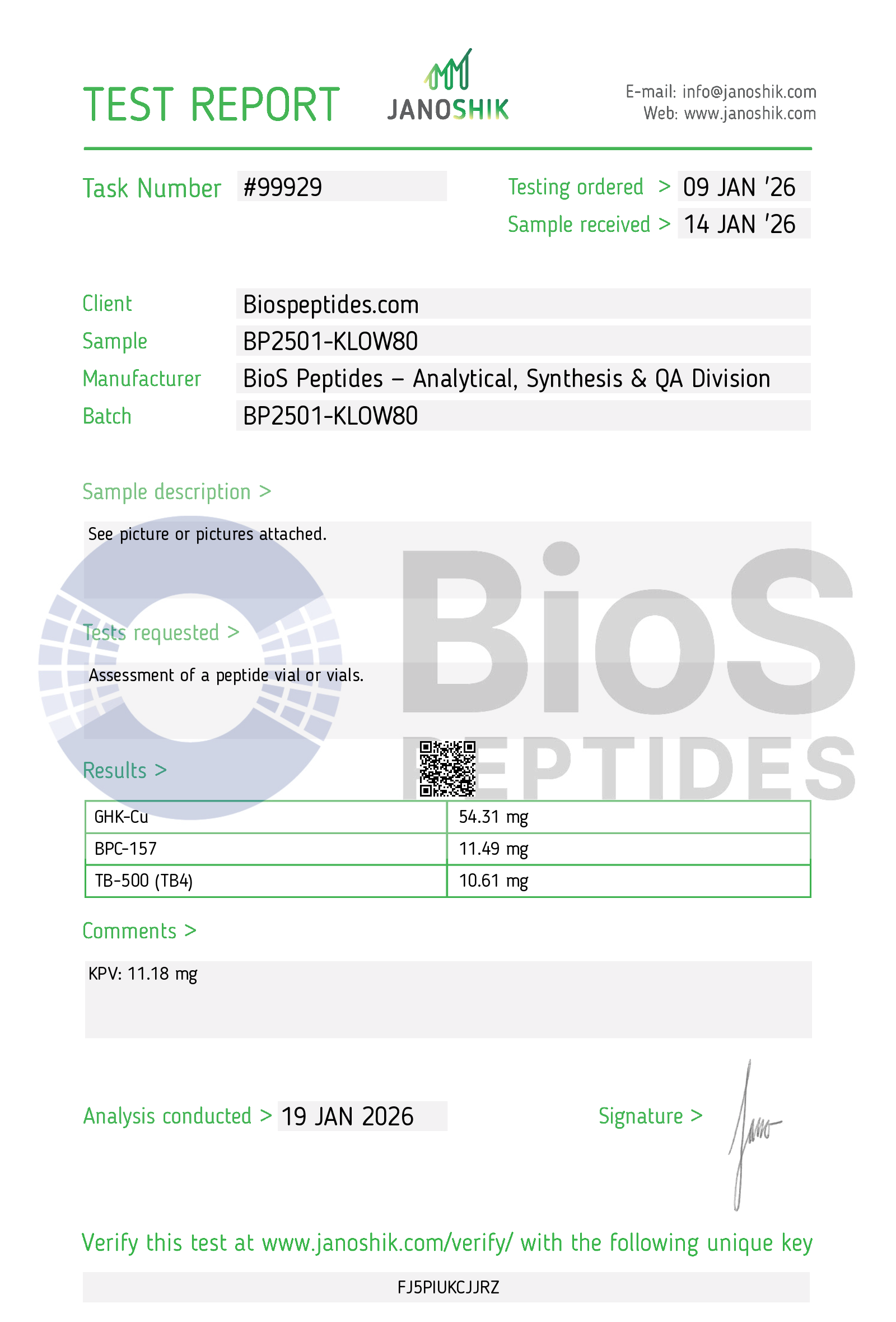 Molecular Weight: GHK-CU: 340.38 g/mol; TB-500: 4963.44 g/mol; BPC-157: 1419.54 g/mol; KPV: 341.41 g/mol
